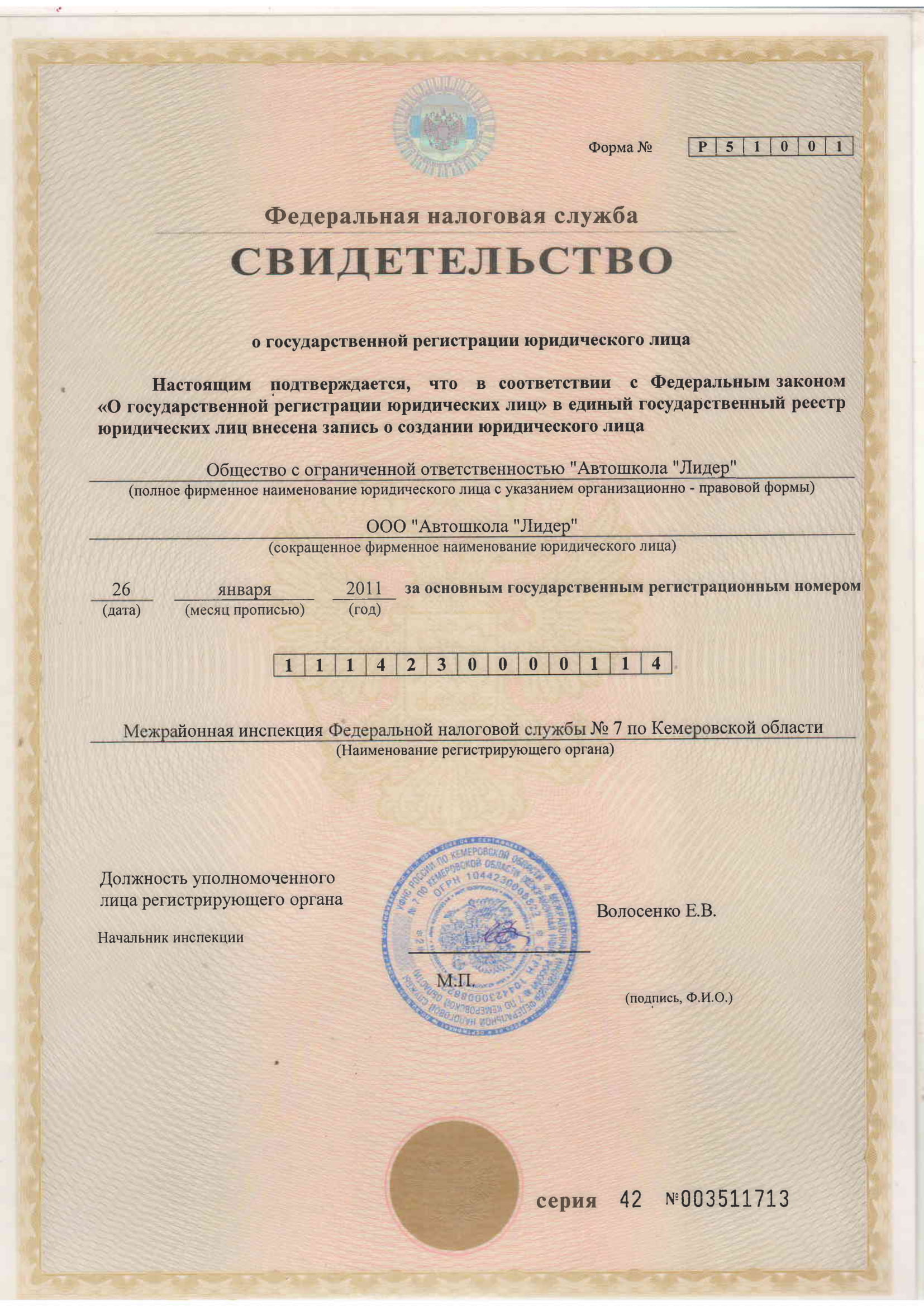Свидетельство о регистрации